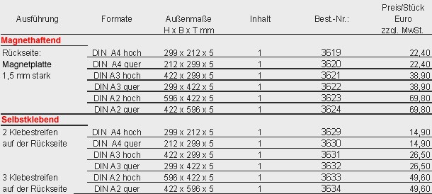 weiß beschichteten 1,5 mm starken Magnetplatte bestückt.